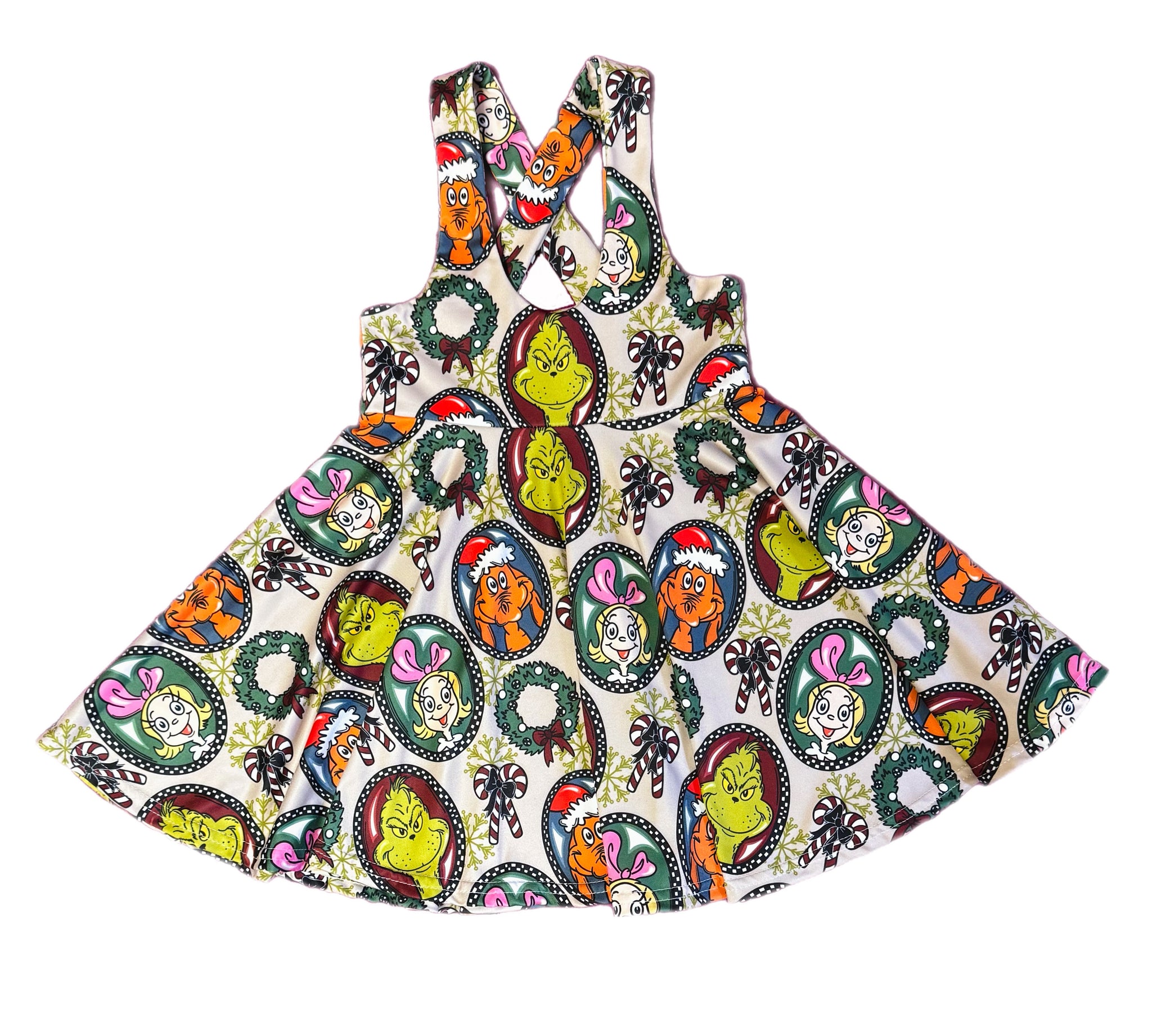 This listing is for the Grinchy Greetings fabric. Please choose the style that you would like to have made in this fabric, and the size. Also, select any additional add on's.