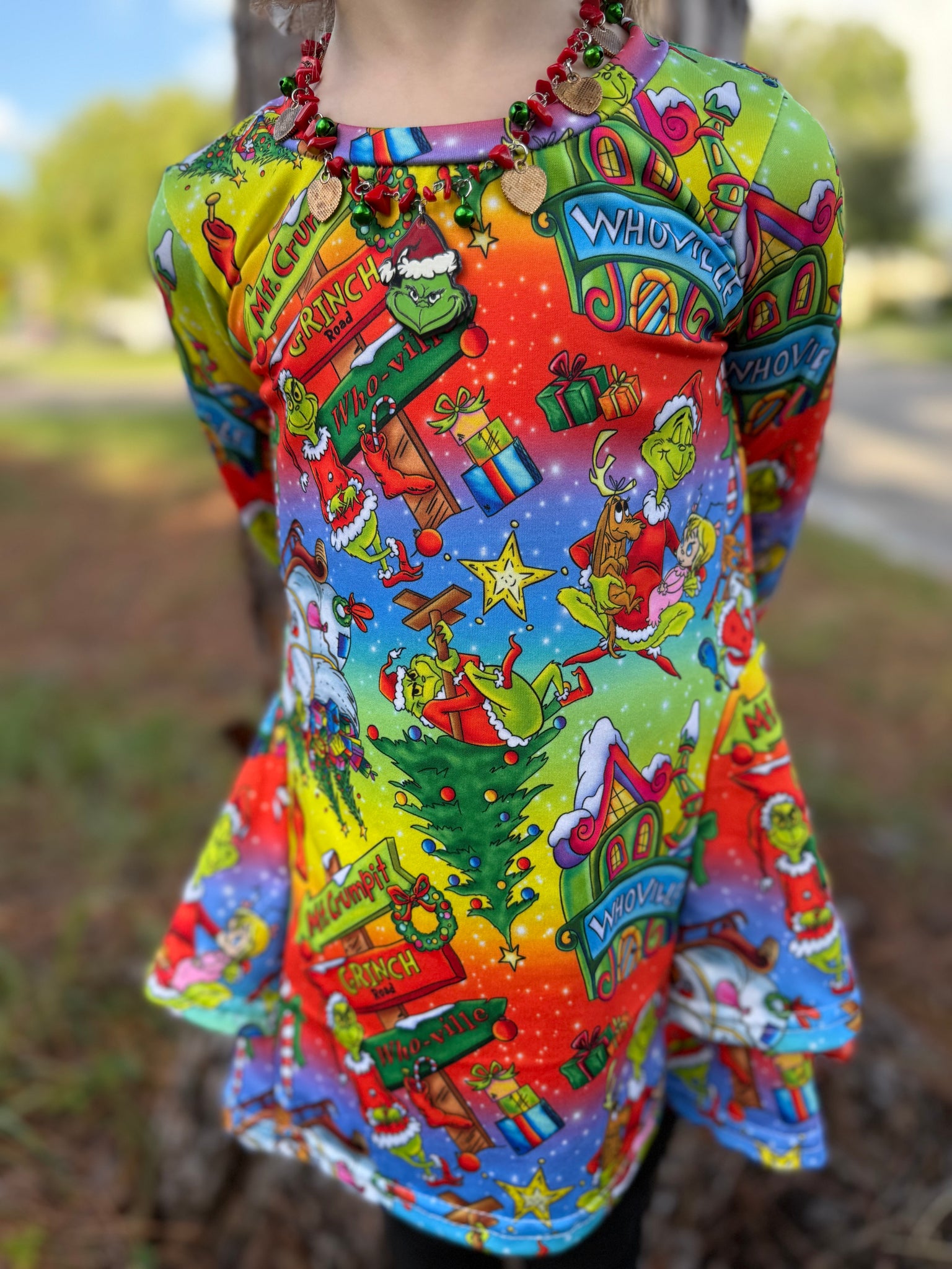 This listing is for the Grinchy Glow fabric. Please choose the style that you would like to have made in this fabric, and the size. Also, select any additional add on's.